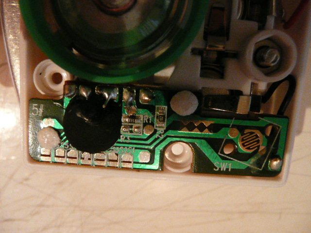 自作と言っても「とりあえず使えればいい」とLEDとcdsを向かい合わせにテープで巻き、グルーガンで固めてガンダムマーカーで黒く塗っただけです。